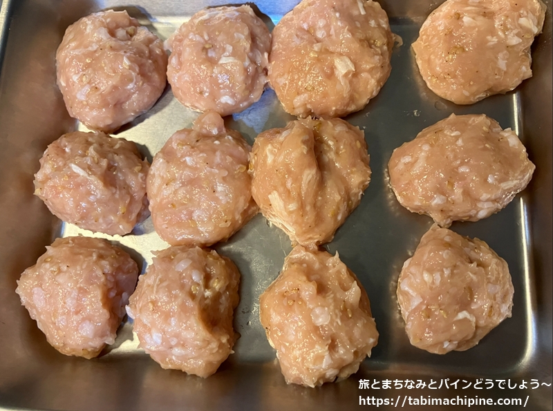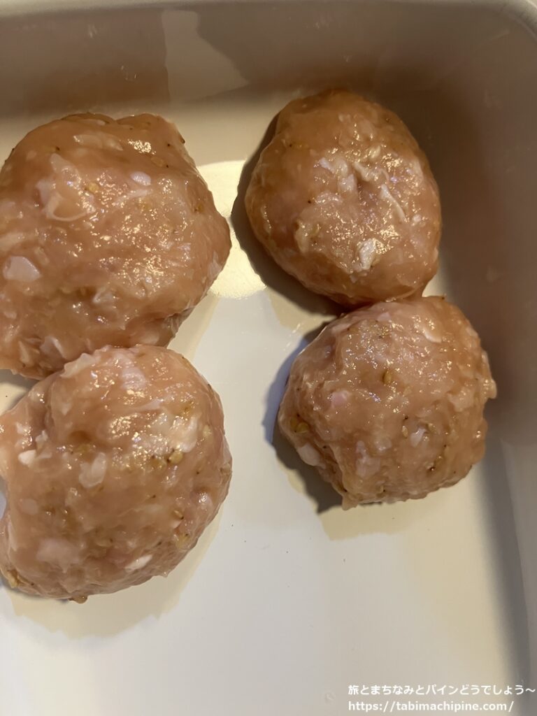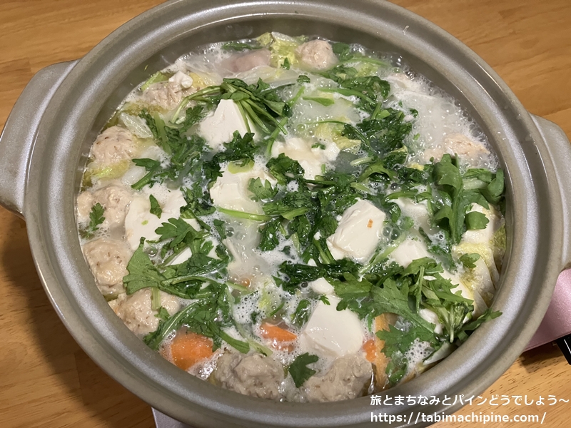 水炊き鍋の素を使いましたが、鍋。インターネット上のレシピより、鶏だんご(つくね)を作って入れました。