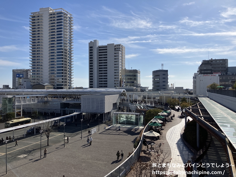 駅北側には大きな駅前広場があり、バス乗り場やタクシー乗り場が配置されています。
